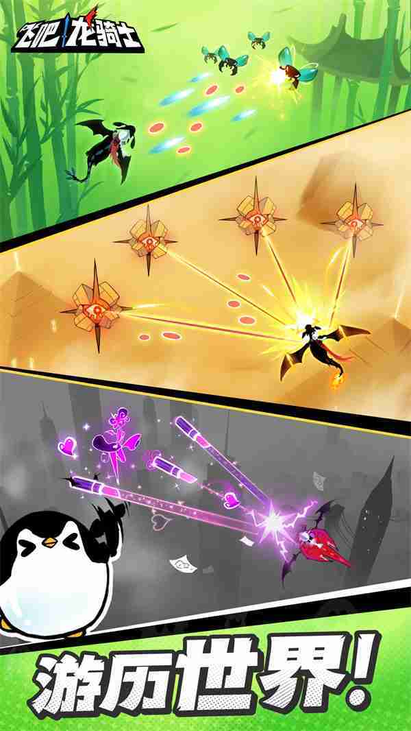 《飞吧龙骑士》是一款集合了飞行弹幕射击、、Roguelike要素和挂机养成的休闲手游,,,极具创意的吞食子弹反击玩法,,,突破传统飞行射击的刻板限制,,,,带来了独特的爽快清屏体验。。。