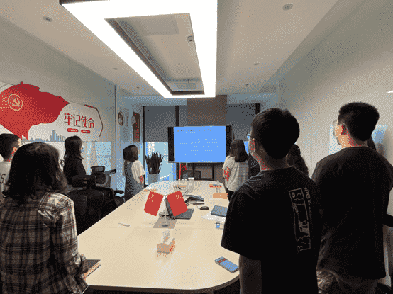 而后,,,,全体党员一起重新学习了解了目前的入党流程要求,,,各支部也将在后续工作中进一步发挥支部职能,,,做好发展党员工作。。最后,,全体党员面向党旗,,重温入党誓词。。。